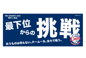 そこで、ファイナルステージを戦う闘志を最高潮に盛り上げるアイテム、「最下位からの挑戦」の文字をデザインしたフェイスタオルを発売!