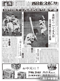 | 配布紙面 | 7/28 昭和33年7月20日記事 「西村投手完全試合の金字塔」 |