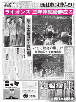 MY PAGEライオンズ・クラシックでの来場特典として、西日本新聞社のご協力により、当時の西日本スポーツの1面記事を復刻し、両日先着1万名のお客さまに“野武士軍団”を象徴する紙面を配布いたします。