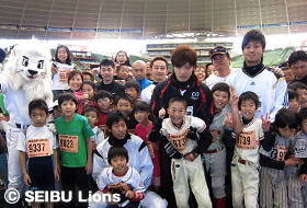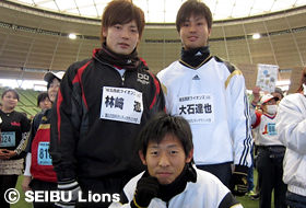 MY PAGE12月4日(日)、第22回所沢シティマラソンが西武ドームをスタート・ゴールの起点に周辺地域を走るコースで行われ、埼玉西武ライオンズでは地域振興活動の一環として、大石達也投手、前川恭兵投手、林崎遼選手が出場いたしました。
