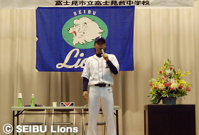 MY PAGE12月8日(木)、青少年への健全育成に寄与する活動の一環として、大島裕行選手が富士見市立富士見台中学校を訪問いたしました。