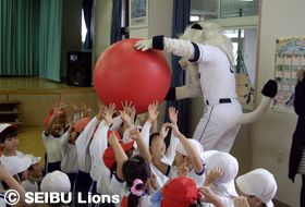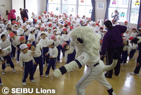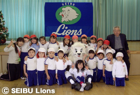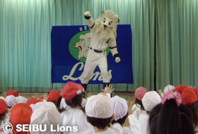 MY PAGE12月9日(金)、埼玉西武ライオンズのマスコットキャラクター“レオ”が所沢富士幼稚園(園児191名)を訪問しました。