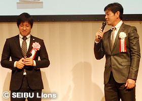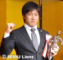MY PAGEセ・パの最優秀新人賞受賞者を対象にした「ゴールデン・ルーキー賞」の表彰式が16日、都内のホテルで行われ、パ・リーグ新人王を獲得した牧田投手が出席、記念のブロンズが授与されました。