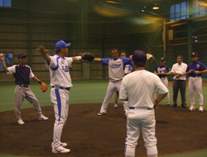 石井貴コーチからは、「体のバランスで投げることが大切です。球筋の安定した投球ができますし、ケガの予防にもつながります。」と実演投球を交えながら指導していました。