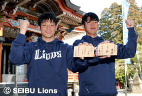 最後は榎原神社を参拝。絵馬にプロ1年目の目標を書き、想いを込めました。