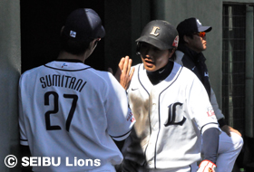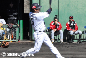 ライオンズは、2回以降打線が沈黙し無得点が続いていましたが、7回裏に、先頭の栗山が対外試合待望の初安打となる二塁打を放ち、チャンスを作ると、続く秋山の左前安打で無死1・3塁。この絶好のチャンスで上本が右前に運び1点を返しました。