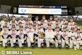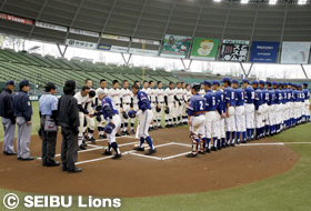 表彰式では、優勝チームの所沢南リトルシニアにライオンズカップ、準優勝チームの川越ボーイズに楯が贈呈されました。