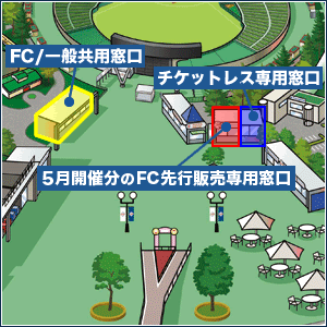 | 抽選券をお持ちのお客さまへの販売終了後 | 整理券をお持ちの会員さまに、先行販売分のチケットを購入いただきます。 | 引き続きチケットレス専用窓口となります。 | 一般・ファンクラブ会員共用窓口となります。 |