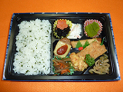 好物の桜エビのかき揚げやチーズハンバーグなど、お勧めのおかずがぎっしり詰まったお弁当に仕上がっています。