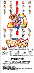 当日ご来場の皆さまには、4月14日(土)公開、映画「クレヨンしんちゃん 嵐を呼ぶ!オラと宇宙のプリンセス」の特別割引券を配布いたします。