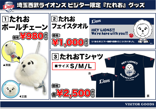「キーチェーン」、「フェイスタオル」、「Tシャツ」の3アイテムを各ビジター球場にて順次発売!