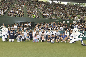 試合開始前に西武ドーム前へ設置される専用の撮影スポットのほか、試合中の球場内や試合後のイベントなどに多くのプロカメラマンが巡回し、ファンの皆さまやその日の様子を撮影します。撮影された写真は、ライオンズオフィシャルサイトに設置されたバナーよりアクセス可能な「ライオンズ・ファンフォトサイト」に随時アップされ、豊富なプリントサイズでの購入に加え、撮影された日付入りのライオンズのオリジナルフォトフレーム付き写真でも購入することができます。