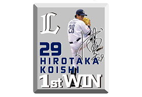 5月3日(祝)楽天戦(西武ドーム)で、見事プロ初勝利を記録した小石投手(背番号:29)の“プロ初勝利記念ピンバッチ”を3,000個限定で、6月23日(土)オリックス戦から西武ドームにてファンクラブ会員さま限定で販売いたします。