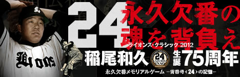 「鉄腕」と呼ばれた稲尾和久氏の生誕75周年を迎えた今季、稲尾氏の背番号「24」を永久欠番とし、ライオンズ全員が背番号「24」のユニフォームを着用して戦います。当日は、同氏の功績を振り返るセレモニーや、日本プロ野球史上初の歴史的な試合への来場の証としてメモリアルゲーム“観戦記念入場券”の配布、試合後にはLビジョンの映像をフィールド内で鑑賞していただく「ライオンズ・クラシックシアター」の実施など、メモリアルゲームにふさわしい内容でお送りいたします。