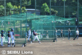 夏らしい快晴の中、1日目のクリニックがスタート。西武第二球場でライオンズアカデミーの岡村校長・石井コーチの指導のもと、ウォーミングアップから走塁、キャッチボール、守備、打撃と続き、両氏から子どもたちに的確なアドバイスを送りました。