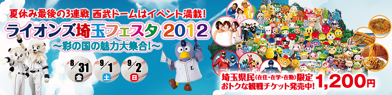 夏休み最後の3日間は、「埼玉フェスタ2012」とお得なチケットで、埼玉県の魅力とライオンズを思っきり楽しもう!