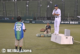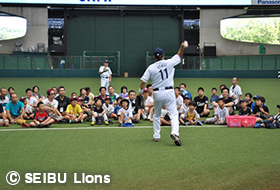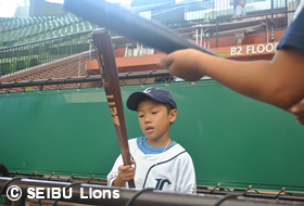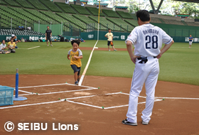 普段、ライオンズ選手がプレーする憧れの西武ドームフィールドで、ウォーミングアップ・親子キャッチボール・バッティングを体験し、真剣な眼差しと笑顔がはじける子どもたちの姿がとても印象に残りました。