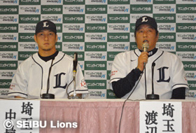 クライマックスシリーズ開催に先駆けて行われた共同記者会見では、渡辺監督、中島選手が出席し力強くシリーズへの意気込みを語ってくれました。