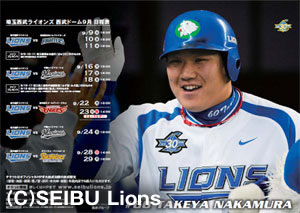 MY PAGE埼玉西武ライオンズでは、8月28日より「埼玉西武ライオンズ9月公式戦日程ポスター」を約15,000枚掲出いたします。