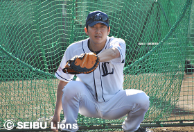 守備練習を終えてからも、秋元コーチとボールを使ったトレーニングで正捕手獲得に向け守備のアピールが続きます。