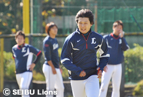 投手陣は投内連係、ダッシュ、ノックなどで汗を流しました。タイムを計りながら何本も繰り返し行われたダッシュでは、先日侍ジャパン入りを果たした涌井投手が、自身のタイムを意識しながら走りこんでいました。