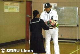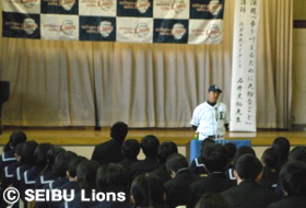 MY PAGE11月5日(月)、ライオンズOBでライオンズアカデミーの石井丈裕コーチが秩父市立尾田蒔中学校を訪問しました。