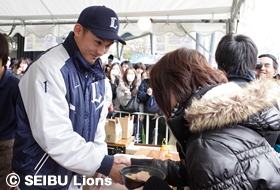 MY PAGE本日11月23日(祝)、「LIONS THANKS FESTA 2012」が開催され、メインエリア(西武ドーム)、ベースボールエリア(西武第二球場)、キッズエリア(C駐車場)を合わせ、計49,000名(重複者含む)のファンの皆さまにご来場いただきました。時折小雨の降る、寒い中での開催となりましたが、監督・コーチ・選手・スタッフ一同、心より感謝いたします。