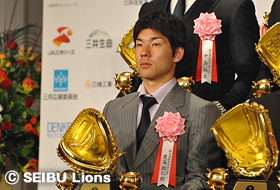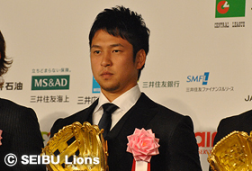 「本当に欲しかった賞なので、すごく嬉しいです。(ライオンズの捕手では伊東勤現千葉ロッテ監督の11度が最多だが?)超えられるようにがんばりたいと思います。」
