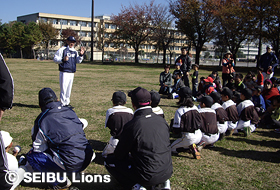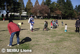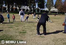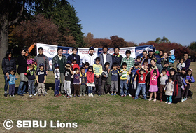 MY PAGE11月25日(日)、埼玉県入間市内の彩の森入間公園において、77名の親子を対象に「親子キャッチボール教室」が開催され、ライオンズOBの土肥義弘氏が講師を務めました。