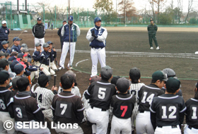 「今日は、たくさんのことを教えていただきありがとうございました。来年は優勝目指してがんばっ てください。僕たちはライオンズを応援しています。」