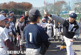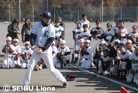 MY PAGE12月8日(土)、三芳町運動公園において少年野球5チーム80名を対象に、「埼玉西武ライオンズ野球教室」が開催され、ライオンズOBの松沼雅之氏、安藤信二氏が講師を務めました。