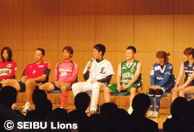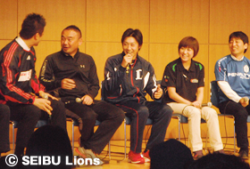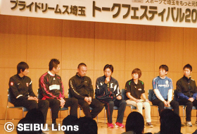MY PAGE12月11日(火)、さいたま市浦和コミュニティセンター 多目的ホールで開催された「三国コカ・コーラ プレゼンツ プライドリームス埼玉 トークフェスティバル2012」に秋山翔吾選手、眞山龍二軍マネジャーが参加しました。