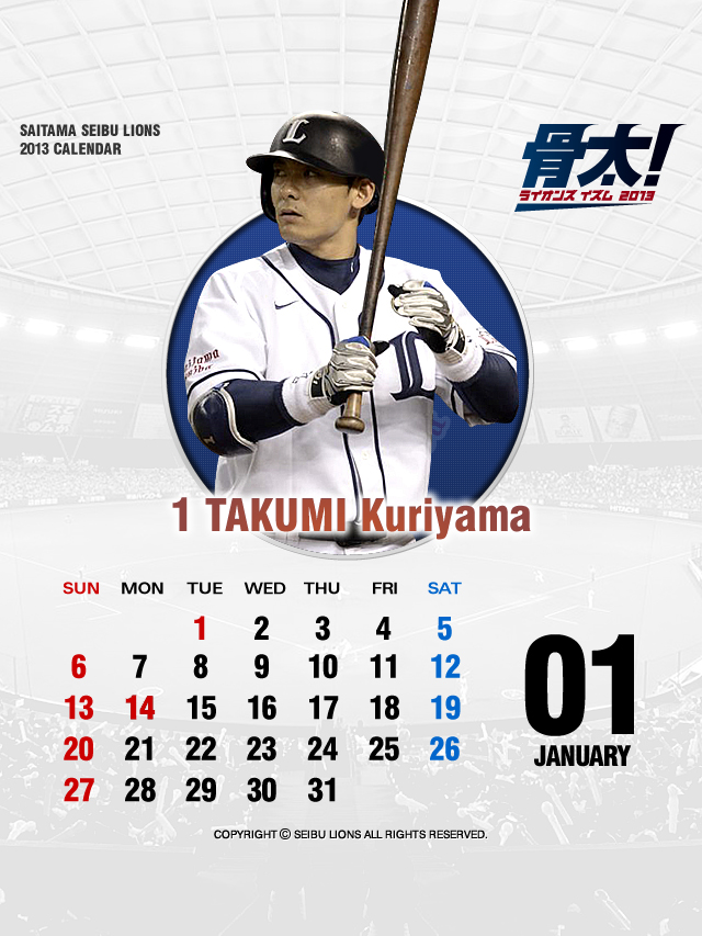 さてお待ちかねの2013シーズンのスタートを飾る壁紙・待受けカレンダーは、2年連続でその初陣を飾るキャプテン、そして選手会長 栗山巧選手デザインです!!