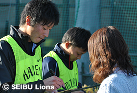 また練習を終えると、見学に訪れたファンの方にサイン会を実施。さっそくライオンズ選手の一員としてファンの方との交流を深めていました。