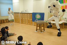 MY PAGE1月7日(月)、埼玉西武ライオンズのマスコットキャラクター・レオがNicot富士見台(園児50名)を訪問しました。
