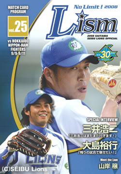 今回の表紙を飾るのはライオンズのピンチを何度も救ってきたサウスポー三井浩二投手と9月2日に一軍昇格し即スタメン4番を任された「ゲッチュ」こと大島裕行選手です。