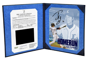 本商品は、金子選手のプロ初本塁打を記念し、当日のホームランの場面の写真をコラージュ・デザインしたフォトに、直筆サインが入った記念商品です。