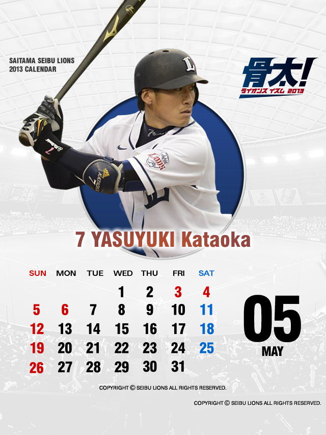 5月の壁紙・待受けカレンダーは、「1番・セカンド」に帰ってきた片岡治大選手デザインです!