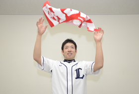 登板日の初回に登場する時や、最終回のマウンドに上がる時、また、お立ち台に上がった試合では、ヒーローインタビュー後のファンへの挨拶時を中心に、タオルを投げて菊池投手にエールを送ります。「YUSEIフェイスタオル」で菊池投手を後押しし、ライオンズを勝利へ導こう!