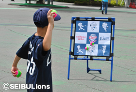 選手会と球団で協議のうえ、的に目掛けて投げて遊ぶ遊具を利用することにより、多くの子ども達に野球やライオンズに触れる機会を持っていただきたいという想いから、埼玉西武ライオンズのマスコットキャラクター・レオとライナがデザインされたターゲットゲームを寄付することを決定いたしました。