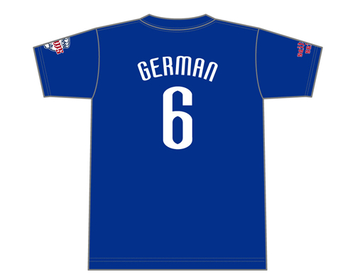「ヘルマンG6 Tシャツ」は、本人のリクエストから、母国「ドミニカ共和国」の国旗をイメージし、大きく描かれた「G6」は、名前「GERMAN」の頭文字と背番号「6」をデザインしました。