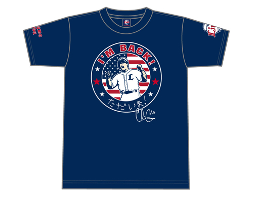 「カーター IM BACK!Tシャツ」は、ライオンズファンへ日本語入りのデザインにしたい!というカーター選手の希望により、本人直筆の「ただいま!」の文字をプリントしたデザインに。