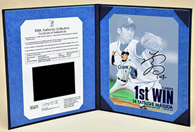 本商品は、増田投手のプロ初勝利を記念し、プロ初勝利試合となった6月30日の投球場面の写真をコラージュデザインしたフォトに、直筆サインが入った記念商品です。