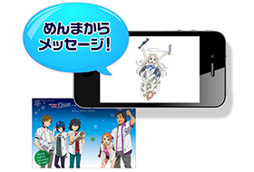 専用アプリを起動したスマートフォンをポストカードにかざすと、めんまが浮かび上がってきて、オリジナルメッセージを聞く事ができます。
