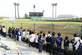 西武ドームでは抽選の倍率が高く、なかなか参加することができない練習見学会ですが、大宮開催恒例となった「練習見学会in大宮」は、ご来場いただくだけでもれなく参加可能!もちろんお連れさまも何名でも参加できます!