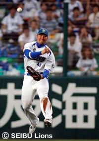 「強肩賞」は、補殺内容に応じてポイントをつける「ポイント方式」で選考し、最も通算ポイントの高い外野手が選ばれます。 1.中継を経ずにダイレクトで走者を刺した補殺には2ポイント G.G.佐藤選手・選手名鑑へ | ![]() |