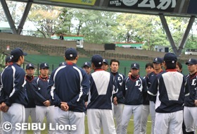 今日はウォーミングアップ、ランニング、キャッチボールと軽めのメニューで練習を終えましたが、新たに船出したライオンズのこれからに、どうぞご期待ください。