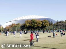 MY PAGE| 10月18日・19日の西武ドームでクライマックスシリーズが行われる日は、1軍の投手陣が試合前のウォーミングアップや若獅子が1軍目指して練習に励んでいる第二球場をキャッチボールスペースに開放いたします。 秋空の下、キャッチボールを楽しんだ後にライオンズの応援で・・・ ※写真は2007西武ライオンズファン感謝の集いのものです。 | ![]() |