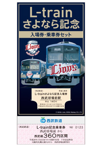 また、2010年7月10日から運行開始した「L-train(3015号車)」が今年12月に引退することから、サンクスフェスタ開催にあわせて、11月23日(祝)西武球場前駅前特設ブースにて「L-trainさよなら記念入場券・乗車券セット」を1セット500円で2,000セットを限定発売します。