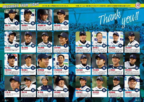 さらに、選手からの感謝メッセージや、2013シーズン全試合PLAYBACK、そして新生ライオンズとして始動している秋季キャンプの密着レポートなど、シーズン総集号にふさわしい内容満載の特大号。